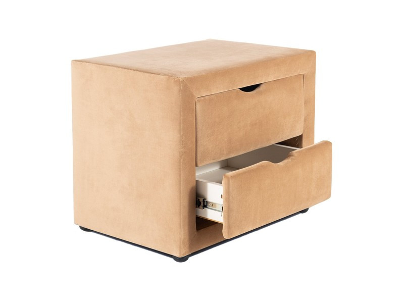 Table de chevet en velours avec 2 tiroirs - Beige - L 50 x P 35 x H 42 cm