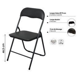 Chaise Pliante en PVC et Métal Noir - Lot de 6 Chaises Pliables | Solides