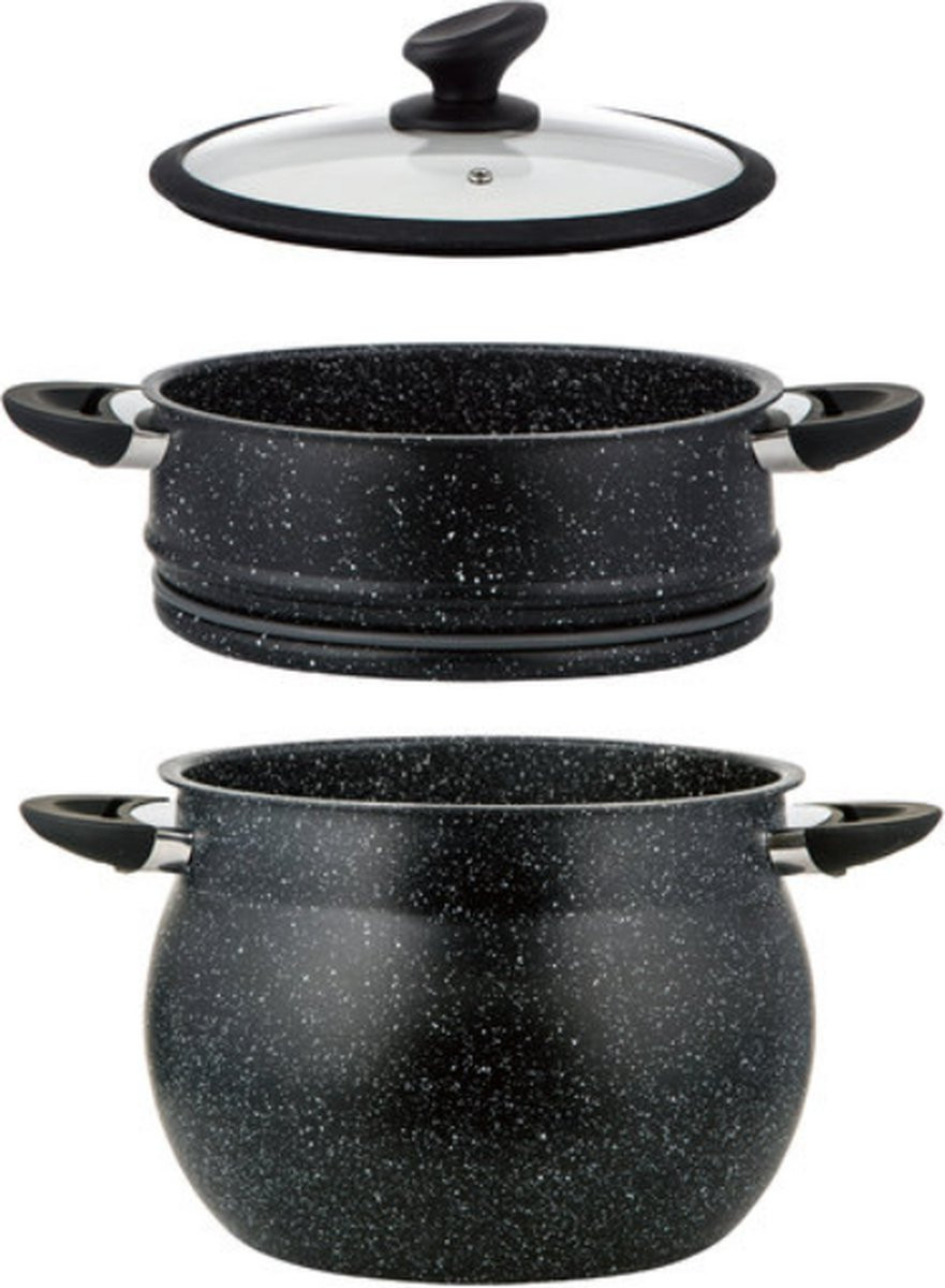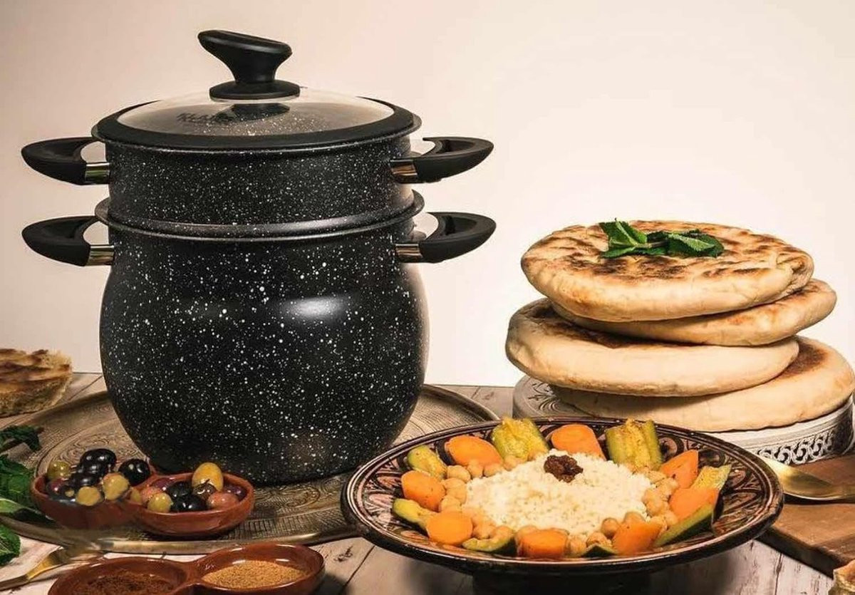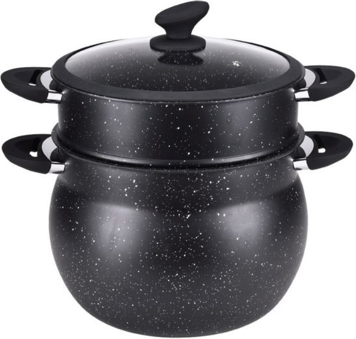Couscoussier en fonte d'aluminium, légère et solide, accompagnée d'un revêtement breveté anti-adhérent.